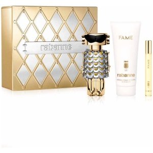 EAU DE PARFUMValorado con 0 de 5$520,000Fame EDP 80 ml+Body Lotion 100 ml+Travel Size 10 ml Fame de Rabanne es una fragancia de la familia olfativa Almizcle Floral Amaderado para Mujeres. Esta fragrancia es nueva. Fame se lanzó en 2022. Fame fue creada por Dora Baghriche, Marie Salamagne, Alberto Morillas y Fabrice Pellegrin. Las Notas de Salida son mango y bergamota; las Notas de Corazón son jazmín y incienso de olíbano (franquincienso); las Notas de Fondo son vainilla y sándalo. -
