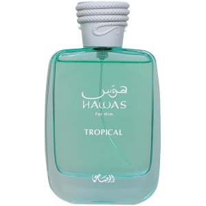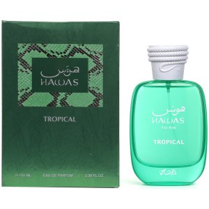 EAU DE PARFUMValorado con 0 de 5$320,000Hawas Tropical de Rasasi es una fragancia de la familia olfativa Aromática Verde para Hombres. Esta fragrancia es nueva. Hawas Tropical se lanzó en 2025. Las Notas de Salida son Agua de coco, jengibre y hojas de higuera; las Notas de Corazón son coco, higo y menta; las Notas de Fondo son sándalo, haba tonka y almizcle. -