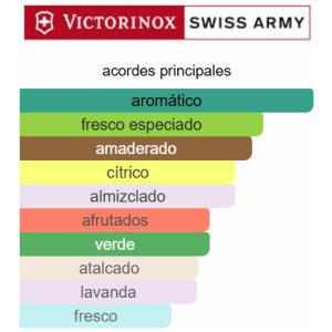 EAU DE TOILETTEValorado con 0 de 5$140,000Swiss Army de Victorinox Swiss Army es una fragancia de la familia olfativa Amaderada Aromática para Hombres. Swiss Army se lanzó en 1997. Las Notas de Salida son menta, notas verdes, bergamota, yuzu y jengibre; las Notas de Corazón son lavanda, romero, hojas de violeta, flor de las nieves (flor de edelweiss) y geranio; las Notas de Fondo son ciprés, abeto balsámico, cedro, almizcle y ámbar. -