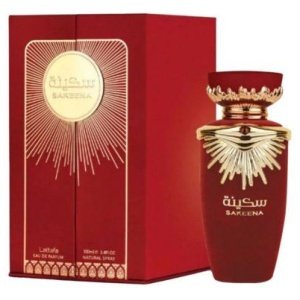 EAU DE PARFUMValorado con 0 de 5$220,000Sakeena de Lattafa Perfumes es una fragancia de la familia olfativa Floral Frutal Gourmand para Mujeres. Esta fragrancia es nueva. Sakeena se lanzó en 2022. Las Notas de Salida son maracuyá (fruta de la pasión), notas ozónicas y mandarina; las Notas de Corazón son frambuesa, rosa, flor de azahar del naranjo y sal de mar; las Notas de Fondo son praliné, tófe, vainilla y almizcle. -