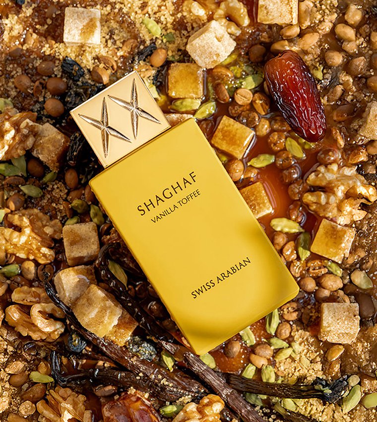 Shaghaf Vanilla Toffee de Swiss Arabian es una fragancia de la familia olfativa Oriental Vainilla para Hombres y Mujeres. Esta fragrancia es nueva. Shaghaf Vanilla Toffee se lanzó en 2024. Las Notas de Salida son tófe y café; las Notas de Corazón son vainilla, nuez, dátiles, leche y cardamomo; las Notas de Fondo son azúcar moreno, vainilla de Madagascar, haba tonka, Vanilla Caviar, benjuí, notas amaderadas y almizcle.