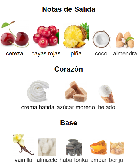 Ruby de Kajal es una fragancia de la familia olfativa para Hombres y Mujeres. Esta fragrancia es nueva. Ruby se lanzó en 2025. Las Notas de Salida son cereza, bayas rojas, piña, coco y almendra; las Notas de Corazón son crema batida, azúcar moreno y helado; las Notas de Fondo son vainilla, almizcle, haba tonka, ámbar y benjuí.