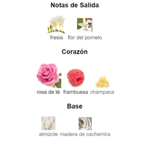 Incanto Bloom (2014) de Salvatore Ferragamo es una fragancia de la familia olfativa Floral Frutal para Mujeres. Incanto Bloom (2014) se lanzó en 2014. La Nariz detrás de esta fragrancia es Sophie Labbe. Las Notas de Salida son fresia y flor del pomelo; las Notas de Corazón son rosa de té, frambuesa y champaca; las Notas de Fondo son almizcle y madera de cachemira.