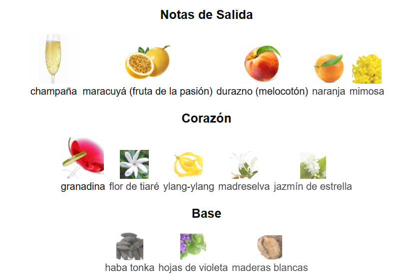 Heiress de Paris Hilton es una fragancia de la familia olfativa Floral Frutal para Mujeres. Heiress se lanzó en 2006. Heiress fue creada por Steve DeMercado y Fragrance Resources. Las Notas de Salida son champaña, maracuyá (fruta de la pasión), durazno (melocotón), naranja y mimosa; las Notas de Corazón son granadina, flor de tiaré, ylang-ylang, madreselva y jazmín de estrella; las Notas de Fondo son haba tonka, hojas de violeta y maderas blancas.