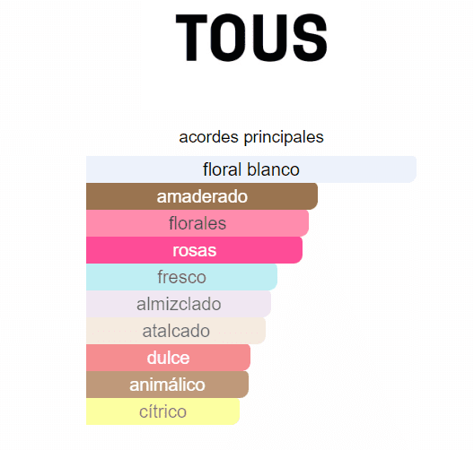 Gold de Tous es una fragancia de la familia olfativa Floral para Mujeres. Gold se lanzó en 2002. La Nariz detrás de esta fragrancia es Stephanie de Saint-Aignan. Las Notas de Salida son palo de rosa de Brasil y hojas del grosellero rojo; las Notas de Corazón son gardenia, flor de azahar del naranjo, peonía y rosa; las Notas de Fondo son almizcle blanco, iris y cedro de Marruecos.